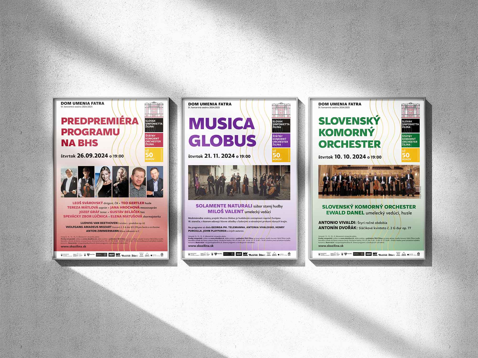 Spolupracovali sme na tvorbe plagátov ku všetkým koncertom 51. sezóny, drobných tlačovinách ako aj na komplexnej kampani s online aj offline formátmi ku spusteniu predaja abonentiek a vstupeniek.
